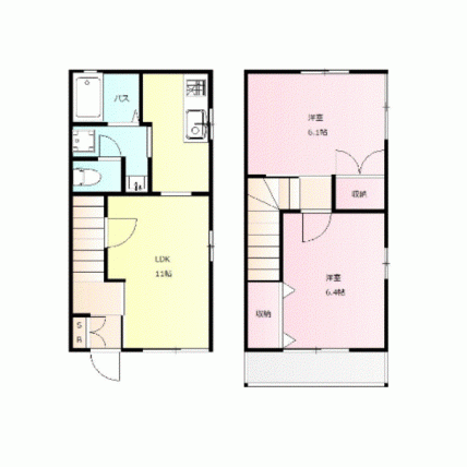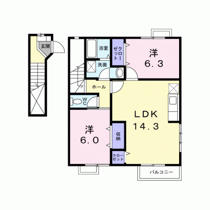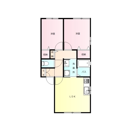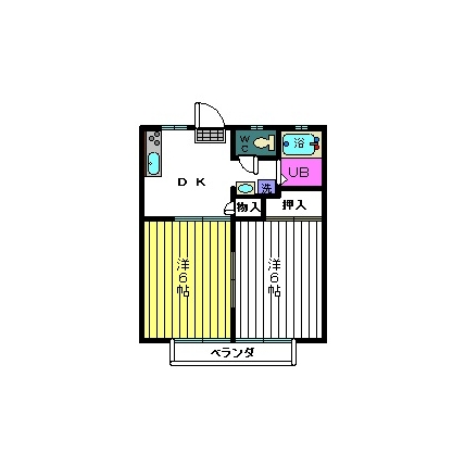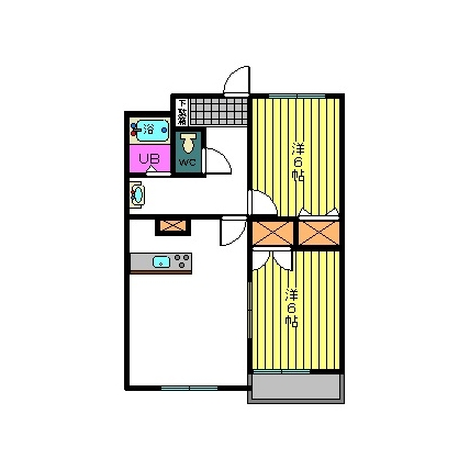 | 敷なし 礼なし 間2DK 面43.741m² |