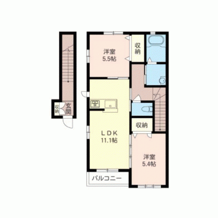 | 敷なし 礼1ヶ月 間2LDK 面54.661m² |