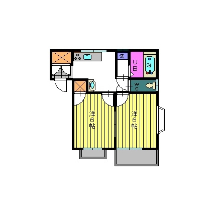 | 敷なし 礼なし 間2DK 面43.741m² |