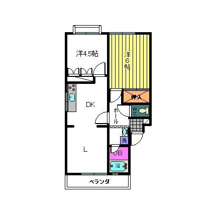 | 敷なし 礼なし 間2LDK 面45.791m² |
