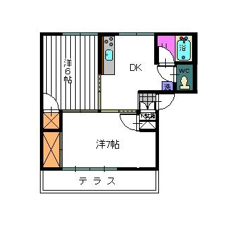 | 敷なし 礼なし 間2DK 面43.741m² |