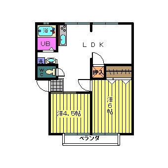| 敷なし 礼なし 間2LDK 面45.791m² |