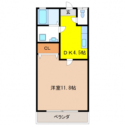 | 敷なし 礼なし 間1DK 面32.811m² |