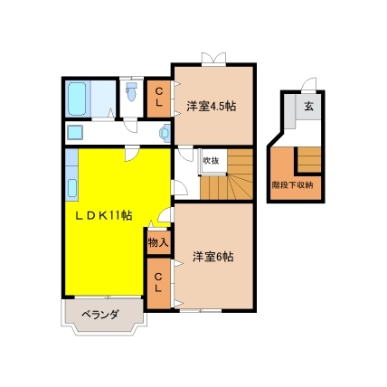 | 敷なし 礼なし 間2DK 面44.551m² |