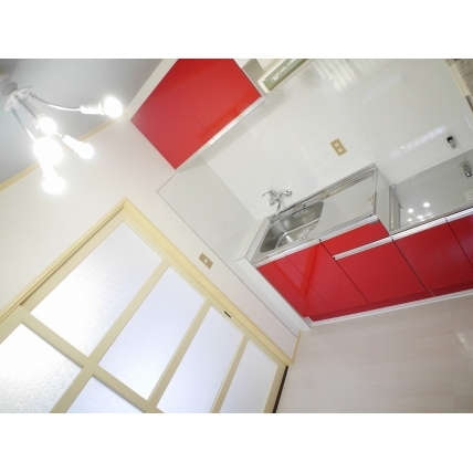 ☆初期費用総額6万円☆★敷金0礼金0★女性限定。白い床と赤色キッチン。角部屋。家電付(冷蔵庫、洗濯機、電子レンジ)…