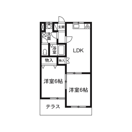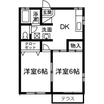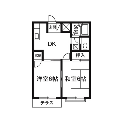 | 敷なし 礼なし 間2DK 面39.741m² |