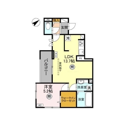 | 敷なし 礼なし 間1LDK 面42.861m² |