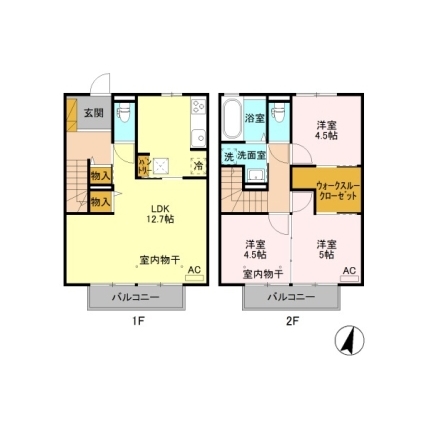 | 敷なし 礼なし 間2LDK 面51.341m² |