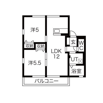 | 敷なし 礼なし 間2LDK 面54.451m² |