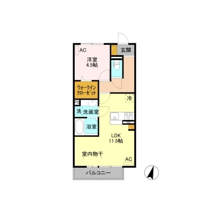 | 敷なし 礼※コメント 間1LDK 面41.451m² |