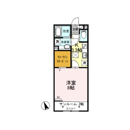 | 敷なし 礼※コメント 間1DK 面29.441m² |