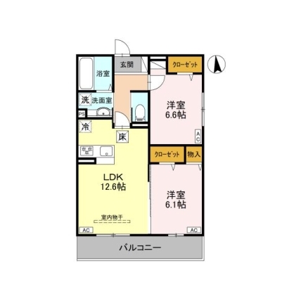 | 敷なし 礼1ヶ月 間2LDK 面61.851m² |