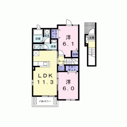 | 敷なし 礼なし 間2DK 面39.741m² |