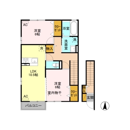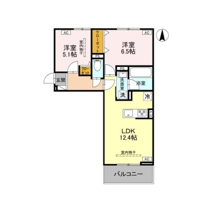 | 敷なし 礼0.5ヶ月 間2LDK 面63.631m² |