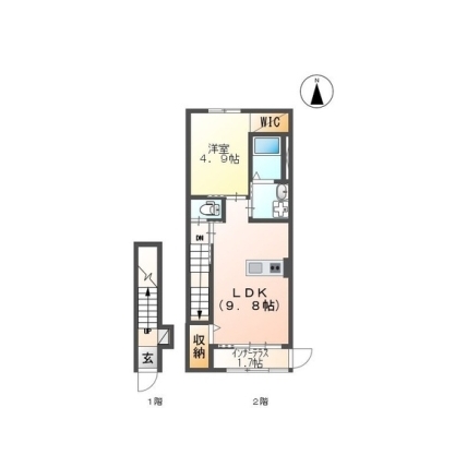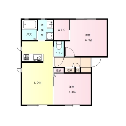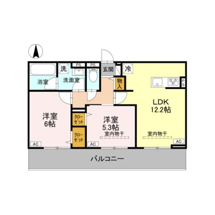 | 敷なし 礼1ヶ月 間2LDK 面53.761m² |