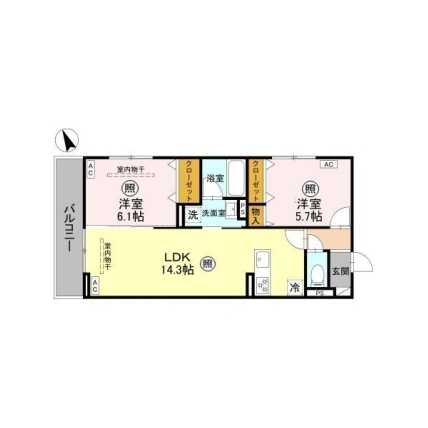 | 敷なし 礼1ヶ月 間2LDK 面57.781m² |