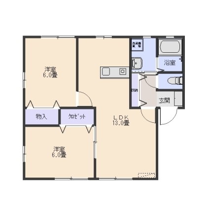| 敷1ヶ月 礼なし 間2LDK 面52.651m² |
