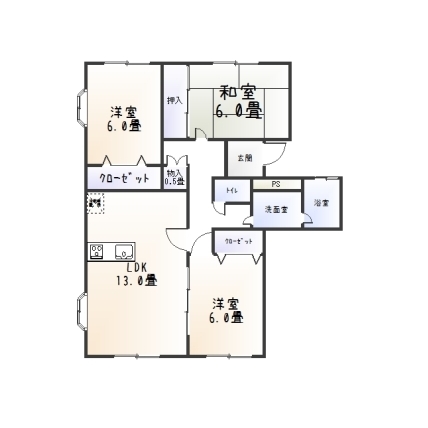 | 敷なし 礼なし 間3LDK 面61.001m² |