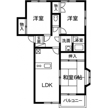 | 敷なし 礼なし 間2DK 面42.91m² |