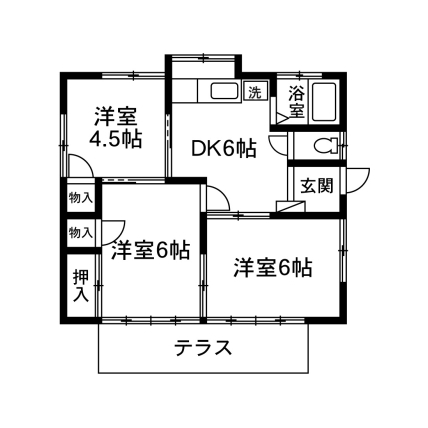 | 敷なし 礼なし 間3DK 面46.371m² |