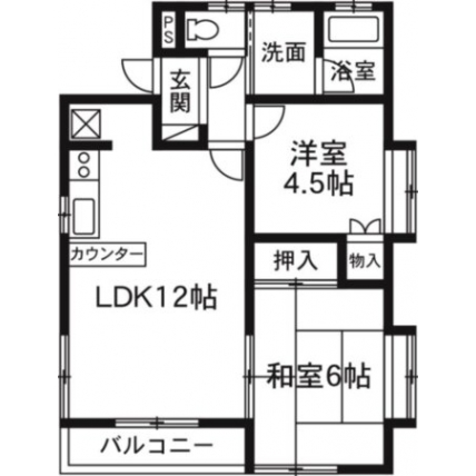 | 敷1ヶ月 礼1ヶ月 間2DK 面45.001m² |
