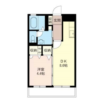 | 敷なし 礼1ヶ月 間1LDK 面44.051m² |