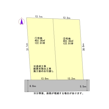 ■造成工完了後のお引渡しです。■敷地内に給排水引き込みます。■1区画のみ契約から引渡しまで約3ヶ月かかります。■分…