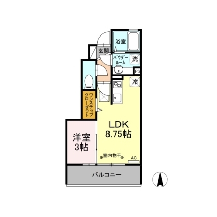 | 敷なし 礼※コメント 間1LDK 面33.391m² |