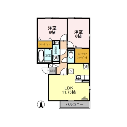 | 敷なし 礼0.5ヶ月 間2LDK 面58.331m² |