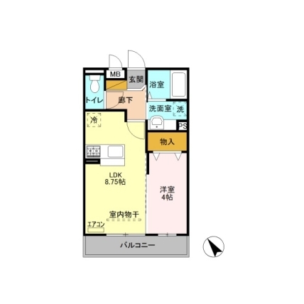 | 敷なし 礼1ヶ月 間1K 面26.871m² |