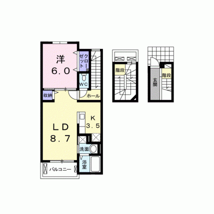 | 敷なし 礼なし 間1LDK 面35.311m² |