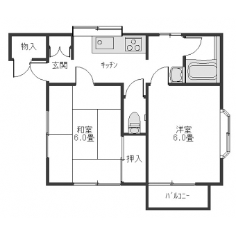 | 敷なし 礼1ヶ月 間2K 面36.361m² |