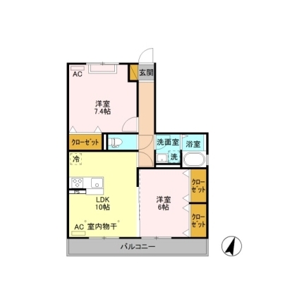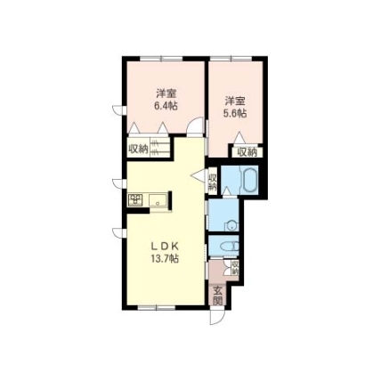 | 敷なし 礼※コメント 間2LDK 面57.021m² |