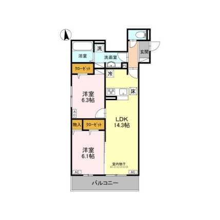 | 敷なし 礼1ヶ月 間2LDK 面61.851m² |