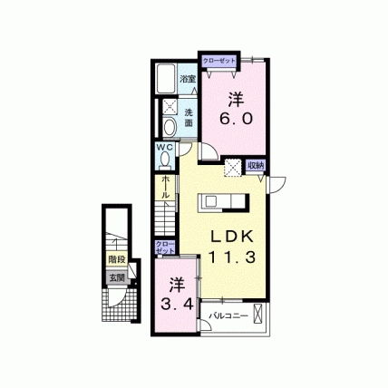 | 敷なし 礼なし 間1DK 面34.021m² |