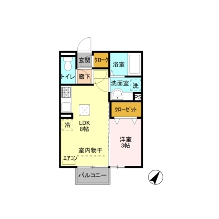 | 敷なし 礼なし 間1DK 面24.711m² |