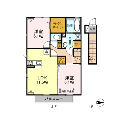 | 敷なし 礼なし 間2DK 面38.501m² |