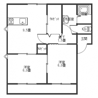 | 敷なし 礼なし 間2DK 面39.741m² |