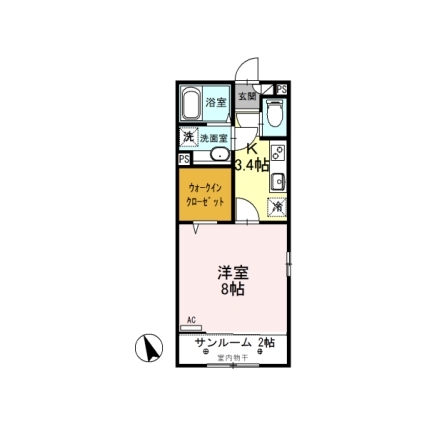 | 敷なし 礼1ヶ月 間1K 面23.141m² |